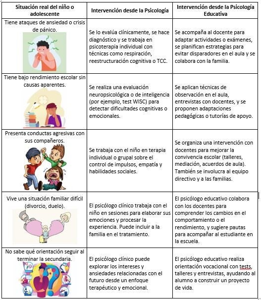 Este blog busca identificar las diferencias entre las técnicas propias de la psicología y de la psicología educativa, destacando cómo se materializan en las intervenciones escolares y, a partir de esto, reflexionaremos sobre el rol de los profesionales en contextos educativos actuales y la necesidad de una mirada crítica, sensible y transformadora. La información volcada se basa principalmente en la investigación didáctica "Estrategias y modalidades de intervención psicoeducativa: historia y perspectivas en el análisis y construcción de prácticas y discursos" cuya referencia se encuentra citada en la Bibliografía, asi como también el video a continuación y algunos artículos recientemente publicados en paginas web referentes de la temática que se encuentran al final.